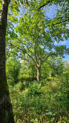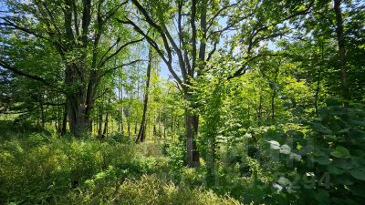 Строительство можно осуществлять, не повреждая крупномеры, т.к часть участка под строительство имеет организованный въезд. Деревья растут отдельной рощей на участке закрывая его от посторонних глаз.
