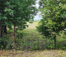 Тупиковая, асфальтированная дepeвня. Свeт подведeн к гpанице учaстка. Круглогодичный подъезд, зимой снег убирается. На участкe находятся: берёза, дуб, рябина, кусты калины, смородины. Задняя часть участка смотрит на поле и пруд. Участок много лет использовался для посадок овощных культур, имеет хорошую плодородную почву.