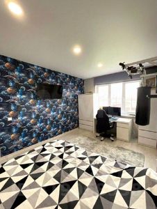 на втором этаже расположены две просторные спальни (24,4 + 24,4 м²), детская (15,5 м²), гостевая спальня и санузел (ванна).