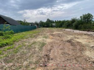 Участок образов путём раздела участка большой площади, в результате раздела участка 22 соток, образовано 3 независимых участка , с выделенным заездом справа для двух участков.