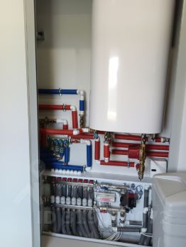 Отопление газовое, центральный водопровод и канализация. Коммунальные платежи 6000 рублей в месяц, в которые входит водопровод и канализация, уборка и охрана территории поселка.