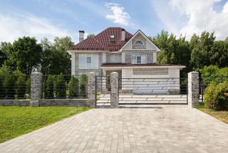 На участке выполнен ландшафтный дизайн, высажено около 100 деревьев и кустарников. Участок поделен на зоны, соединенные вымощенными брусчаткой дорожками. Установлено уличное освещение, обустроена дизайнерская фасадная подсветка дома. Гостевая паковка рассчитана на 4 автомобиля.