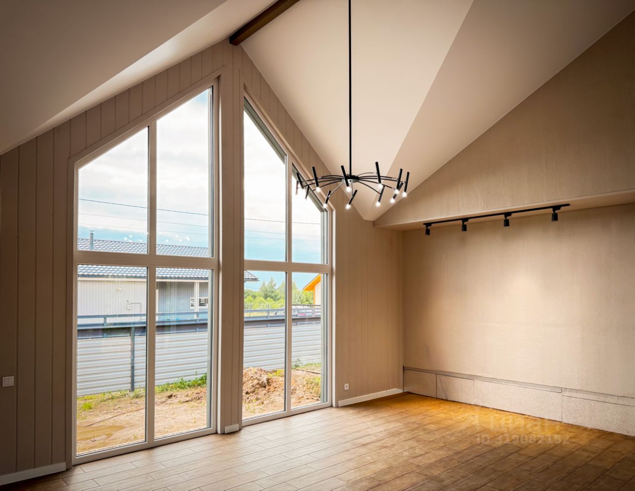 • Кухня-гостиная (33 м²) с вторым светом и потолками 5 м в коньке