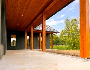 • Панорамные окна, выход на крытую веранду (30 м²) и в сад