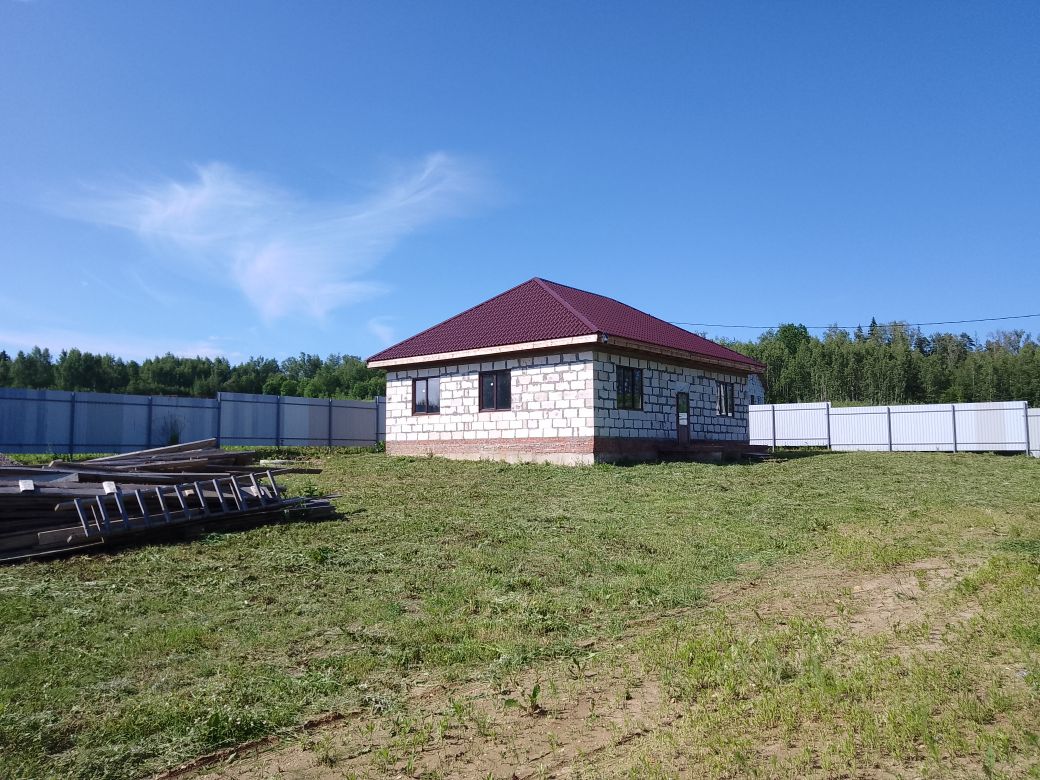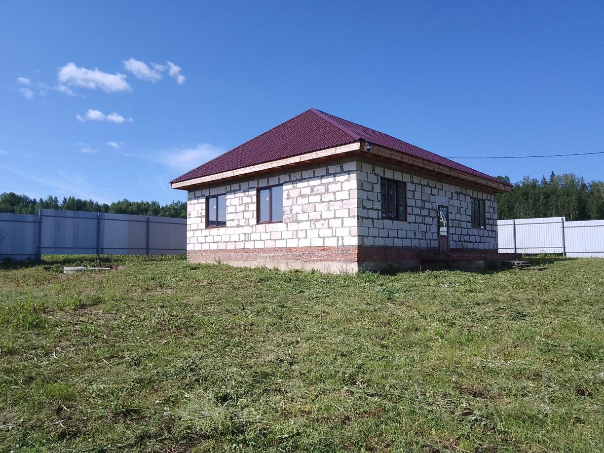 Фундамент дома монолитная плита (бетон не ниже 400-го). Материал стен качественный пеноблок. Крыша металлочерепица. Потолок утеплённый, каменная вата 200 мм. Проёмы окон (7) остеклены двухкамерным стеклопакетом марки Rehau. Подготовлены москитные сетки. Изнутри дом оштукатурен. В доме 7 (семь) помещений: 4 комнаты, блок санузла, кухня, широкий коридор.