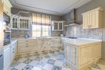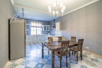 Описание внутренней отделки: отделка выполнена в стиле современной классики. Стены в общих помещениях покрыты декоративной штукатуркой, в спальнях - обои. На полу плитка и паркетная доска (дуб). Лестница ж/б монолит отделана буком. На потолках гипсокартон с лепными элементами Европласт. Установлена импортная сантехника ROCA белого цвета, смесители GROHE. Все коммуникации разведены под ключ, биметаллические радиаторы. Межкомнатные двери выполнены из шпона дуба..