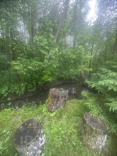 Земельный участок 15 соток, полностью огорожен забором из профильного настила, сделан ландшафт по всему участку, газон, положена брусчатка, въезд с откатными воротами. Закрытая барбекю зона, беседка. Плодовые деревья и кустарники, грядки. Гараж. Баня. Теплицы. По задней части участка у леса, протекает речка, есть отдельный выход.