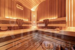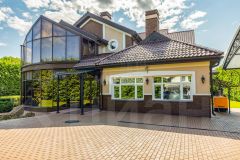 1 этаж: входная группа, спортивный зал, гостиная с камином, кухня-столовая, оранжерея, гардеробная, постирочная, комната отдыха с сауной и с/у, технические помещения и гостевой су