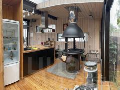 Участок выровнен, высажены молодые голубые ели, установлено ночное освещение территории. Обустроена и застеклена великолепная зона отдыха с барбекю, камином и небольшой кухней. Окна в пол придают ощущение пространства и слияния с природой в любое время года. Во внутреннем дворике размещена классная стритбольная площадка, которая может стать основой для детского развивающего комплекса или обычной лужайки с газоном.