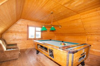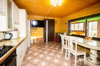 Дом построен в 2013 году из дерева. Кровля выполнена из мягкой черепицы. Двухэтажный дом с дизайнерским ремонтом и высотой потолков 2,6 метра идеально подходит для круглогодичного проживания. Общая площадь дома — 150 квадратных метра, из которых 60 квадратных метров занимает жилая площадь, а 20 квадратных метров отведено под кухню. В доме газовое отопление, что позволяет поддерживать комфортную температуру в любое время года.