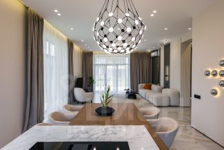 Общая площадь 297,9 м2. Продуманная планировка: 3 спальни, кабинет, 4 ванных комнаты, 4 гардеробные, кухня-столовая, зал, котельная, постирочная, входная группы, террасы.
