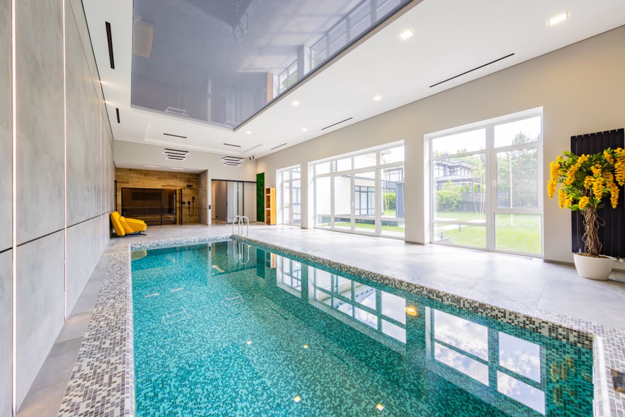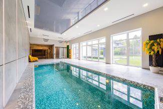 1-ый уровень: холл, гардеробная, с/у, кухня-столовая-гостиная с камином и выходом на террасу площадью 30 кв.м, СПА-зона (бассейн 8.4х3.1 м., сауна, душевая, зона отдыха), комната для персонала, кладовая, гараж на 2 м/м;