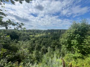 В связи с его расположением в непосредственной близости с высоким и крутым обрывом высотой более 30 метров, со 2 (вторых) этажей построенных домов будет открываться завораживающий вид на бескрайнюю лесную долину.