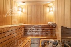 Описание внутренней отделки: отделка с классическими элементами и эксклюзивными дизайнерскими решениями. На стенах - премиальные английские обои и декоративная венецианская штукатурка. На полу паркет и керамогранит с подогревом. Потолки подвесные многоуровневые (гипсокартон). Установлены двери из массива дуба (Италия) с резными порталами и проемами высотой 215 см (в гостиной 285 см), мраморные подоконники (Италия, высота 80 см). В гостиной стоит камин, облицованный мрамором (Италия), на кухне - печь барбекю. На второй этаж ведёт деревянная дубовая лестница шириной 120 cм.