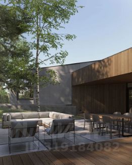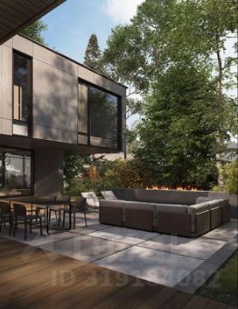 С большой террасы открывается вид на уличный камин - место отдыха, общения и семейного досуга.