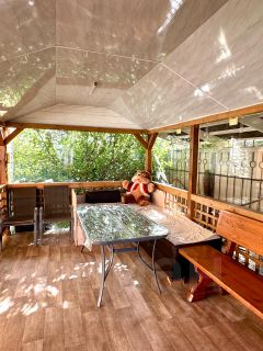 УЧАСТОК: Прямоугольной формы, с автоматическими воротами и двумя колиткам, при желании можно разделить на полноценных 2 участка, с отдельным входом и подъездов, т.к. участок угловой. Есть теплица, беседка, с Летней кухней и подведенной водой, и гибкими окнами. Колодец, с питьевой водой, заведенной в дом, баню, и летнюю кухню. Мастерская, с погребом, для урожая и соленей. Бытовка, с отдельным помещением, для садового инвентаря, летний туалет.Сформировавшийся сад, с плодовых деревьями и кустарниками (Яблони, груши, слива, алыча, вишня, смородина, крыжовник малина и т.д.)По всему участку дренаж и дорожки из брусчатки. Круглогодичный подъезд.