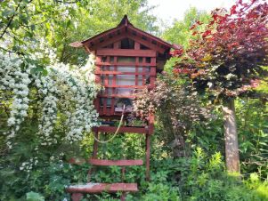 Так же на участке есть скважина, красивая беседка для чаепития в Японском стиле, сарай для садовых инструментов, душ и биотуалет. Вода для полива растений разведена по участку.