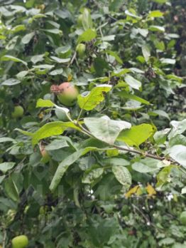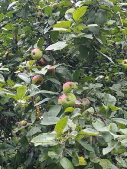 На участке фруктовые деревья. (яблони, сливы). Есть крыжовник и смородина.