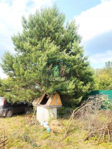 Участок имеет прямоугольную форму и расположен на углу, что добавляет дополнительное пространство и свет. В данный момент проводится благоустройство территории: производится опил деревьев и покос травы, что вы также можете увидеть на представленных фотографиях. Здесь растут плодовые деревья, а также прекрасная сосна и облепиха, создавая атмосферу уюта и комфорта.