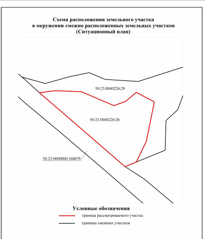 Продаются два смежных земельных участка c кадастровыми номерами 50:23:0040226:26 и 50:23:0040226:29 общей площадью 6,9 Гав. Участки отнесены к территориальной зоне CX-2, что означает, что на них можно строить.