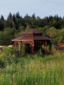 Участок ровный, правильной формы, находится на краю поселка, с собственным выходом к лесу и реке. На участке расположились: уютный летний домик, хозяйственная постройка, состоящая и трех помещений, великолепная беседка из натурального дерева, а так же чудесные качели. Это все уже позволит вам проводить выходные на природе уже, пока идет строительство дома Вашей мечты.