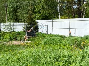 Площадь участка 3 сотки, участок ровный, сухой, правильной прямоугольной формы со скошенным углом. Территория обнесена забором.