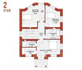 2 этаж: холл, мастер-спальня с с/у и гардеробной, 2 спальни с гардеробными, с/у.