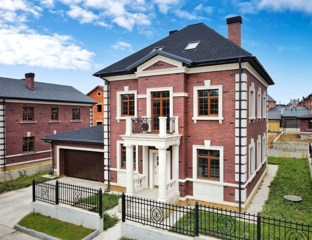 Коттедж с 5-ю спальнями и кабинетом, общей площадью 350кв.м. расположенный на 12 сотках. Дом построен из кирпича с отделкой фасада из клинкерной плитки.