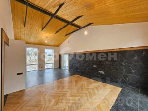 В доме роскошная кухня-гостиная 50м2 с большими панорамными окнами и вторым светом, с элементами дизайна во всех зонах, имеет прямой выход в зону террасы и патио.