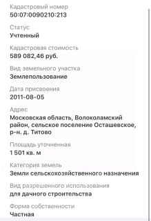 Кадастровый номер участка - 50:07:0090210:213;