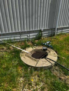 На участке дренажная система, колодец, большая теплица с плодородной землей. Выровненный участок с плодовыми деревьями и кустарниками.