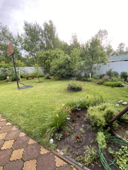 Участок правильной формы огорожен забором из профнастла с распашными воротами для автомобиля. На участке высажены плодовые деревья и кустарники, множество очень красивых цветов. Сделаны небольшие грядки для рассады -зелени и т.д. Есть зона Барбекю, в местах отдыха спортивный газон. Дом подходит под ипотеку и материнский капитал.