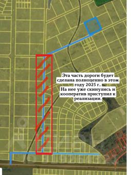 В поселке есть кооператив, в который я вхожу и могу сориентировать по планам и ходу работ. Сейчас уже собственники собрали средства на первую фундаментальную часть дороги ( будет реализована в 2025г., какая именно часть в фото) и следующий на очереди наш. Так же на участке есть пару рощ березовых, рядом лес.