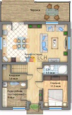- Материал стен: газобетонный блок D500, облицовочный кирпич BRAER