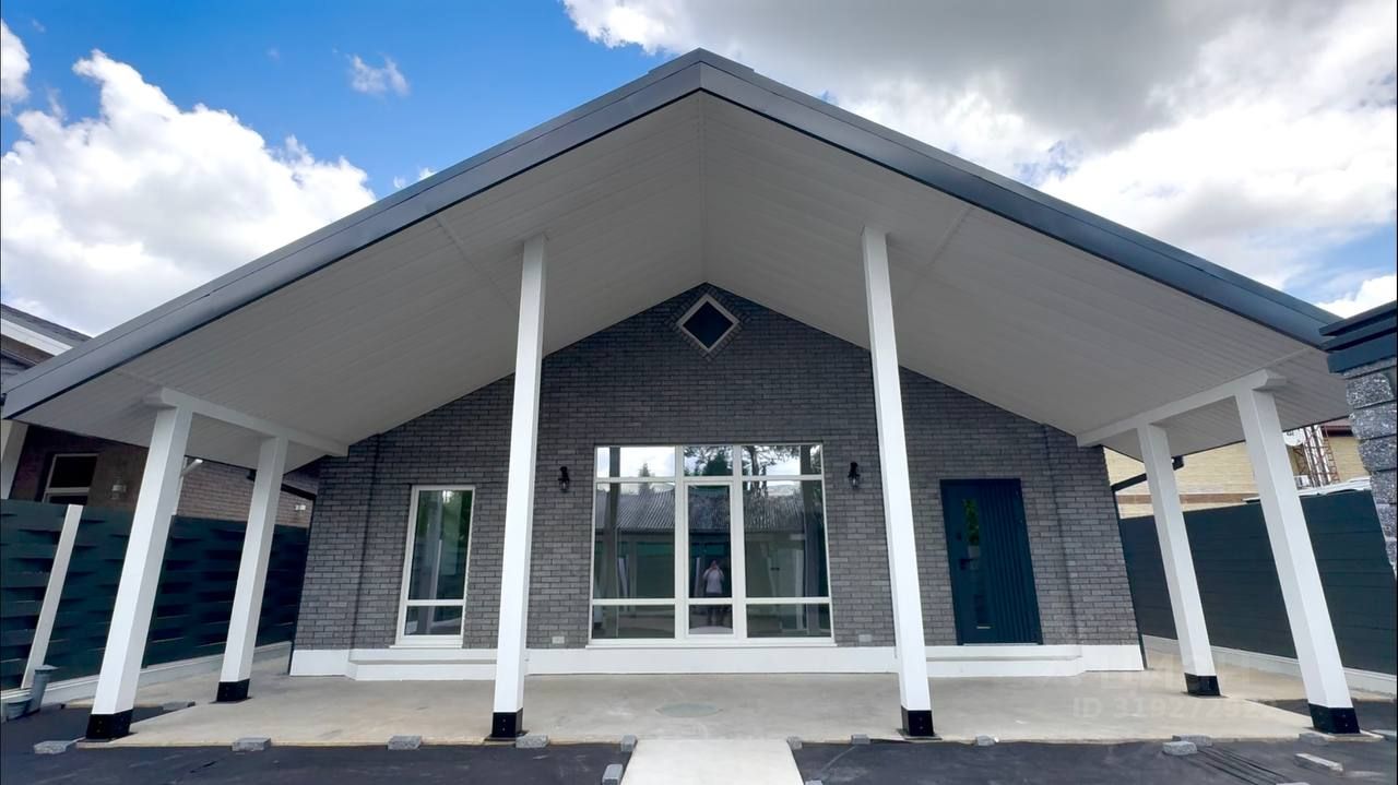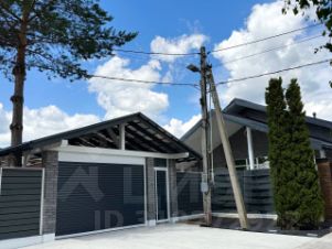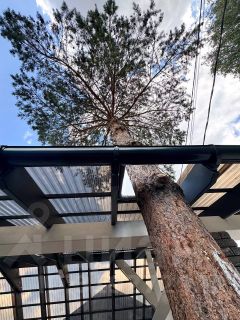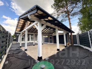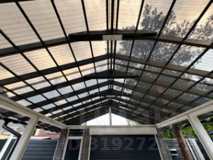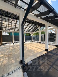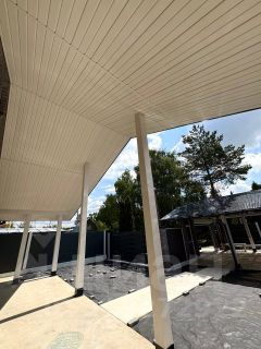 Навес для авто 45 м2 из клеенного бруса брошырованный и покрашеный, кровля монолитный поликарбонат,электрощит,розетки,освещение.