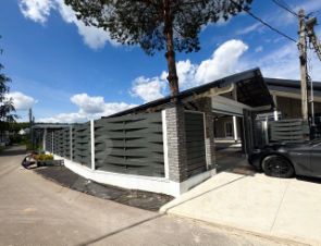 Забор ленточный фундамент, доска натуральная шлифованная пропитанная.
