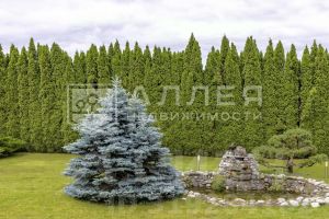 УЧАСТОК: Великолепный ландшафтный участок на котором высажено 300 вечнозеленых крупномеров из лучших европейских питомников. Уникальный ландшафтный дизайн создала компания IMPERIAL GARDEN. Парадная входная зона в дом украшена раскидистым 25 летним бансаем и версальскими туями. Парковый ансамбль дополняет голубая рождественская ель. Высажены 25 летние можжевельники и шарообразные бересклеты, а живая изгородь из 8 метровых туй создает ощущение сказочного леса. В центре сада разбит мини пруд из морского камня в форме сердца с декоративным водопадом. Выложены гранитные дорожки на монолитной подушке. Проведен автополив на 14 зон фирмы RAIN BIRD и автоматическое освещение сада. В дополнение к центральному водоснабжению есть скважина на 140 метров. Отдельный кирпичный гараж на 2 автомобиля и гостевая парковка на 5 машино мест.