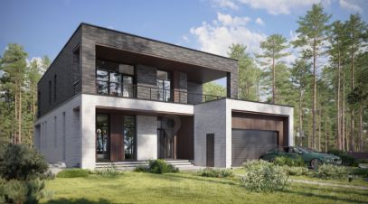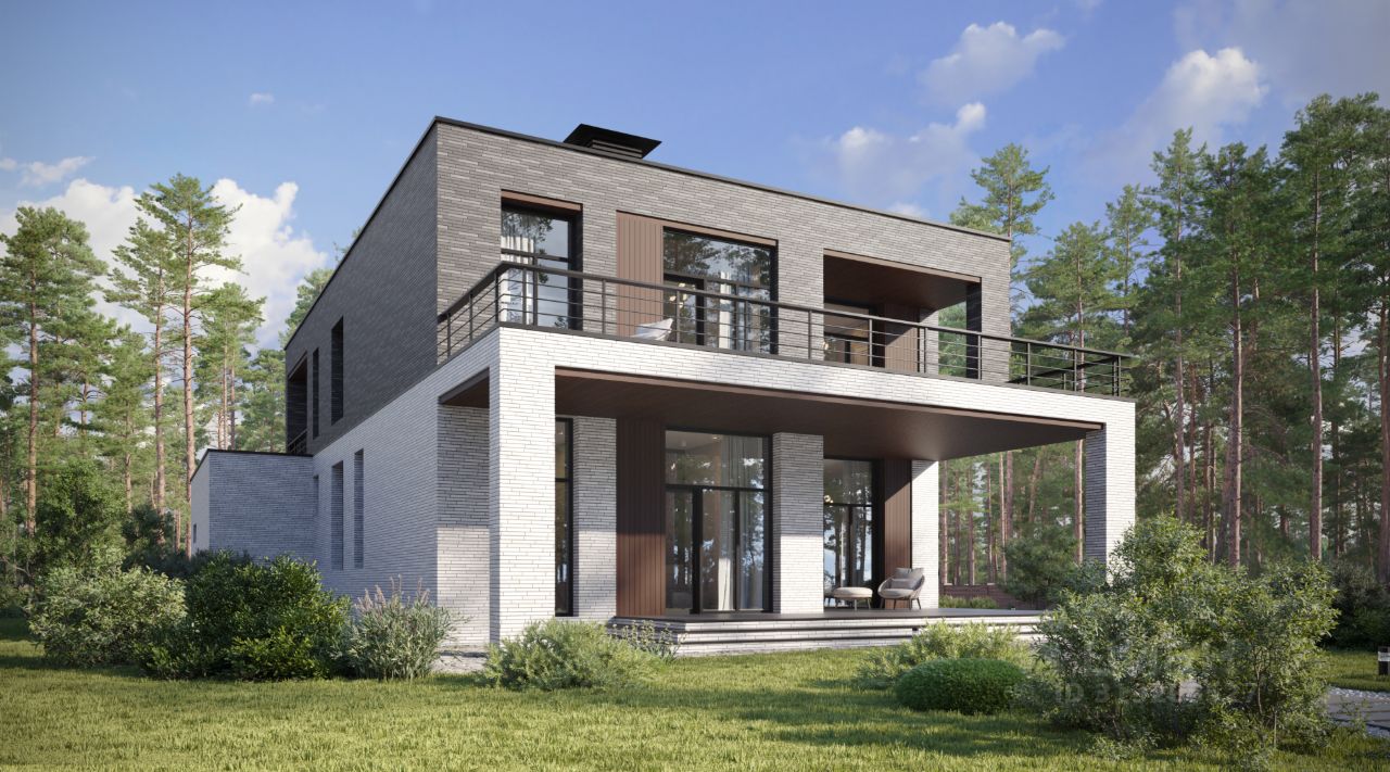Двухэтажный дом в стиле Хайтек, площадью 338 м², расположенный на участке 22 соток