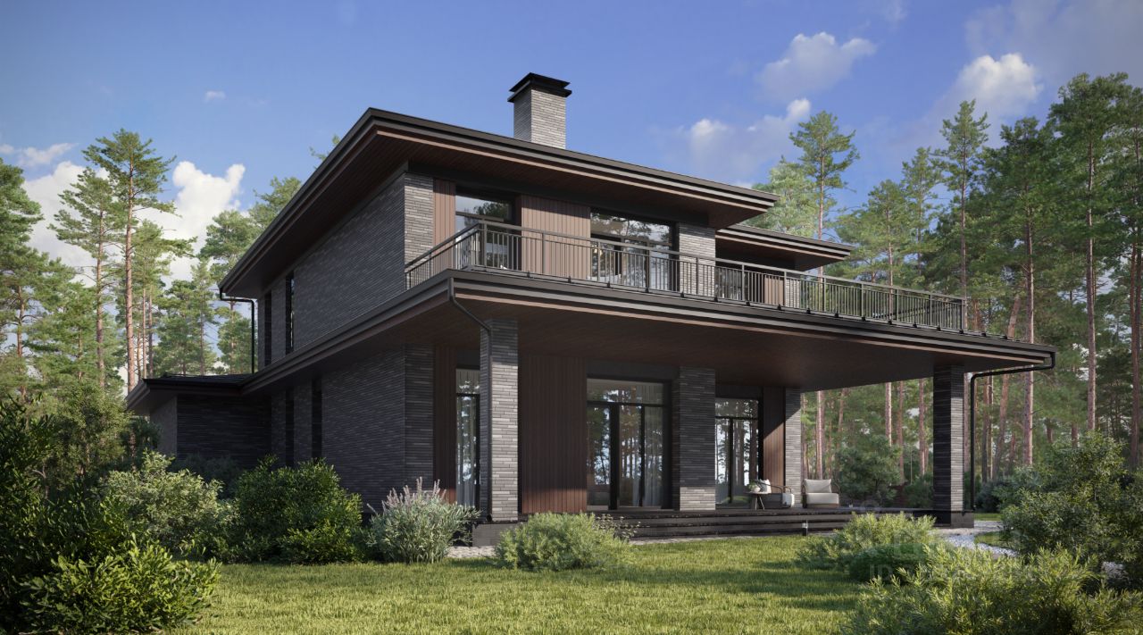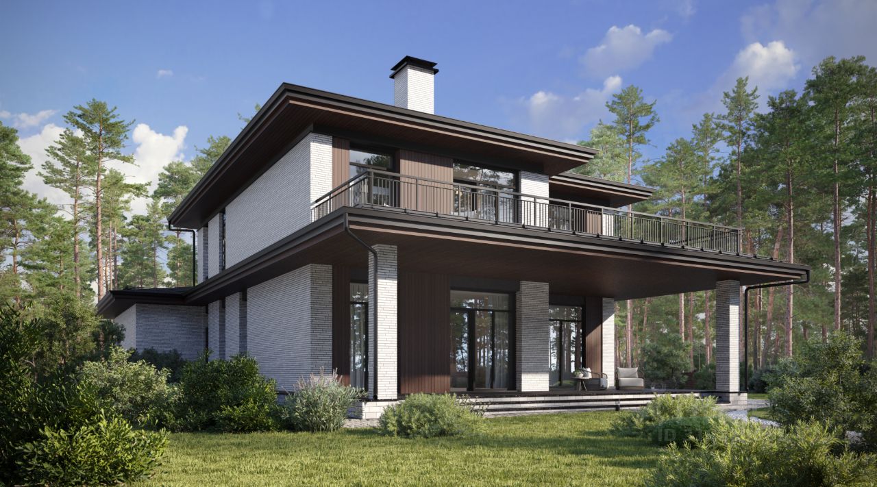 Двухэтажный дом в стиле Райт, площадью 337 м², расположенный на участке 32 соток