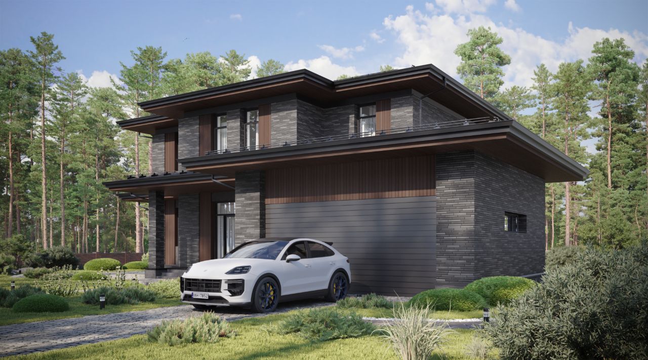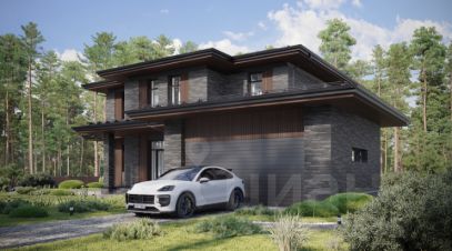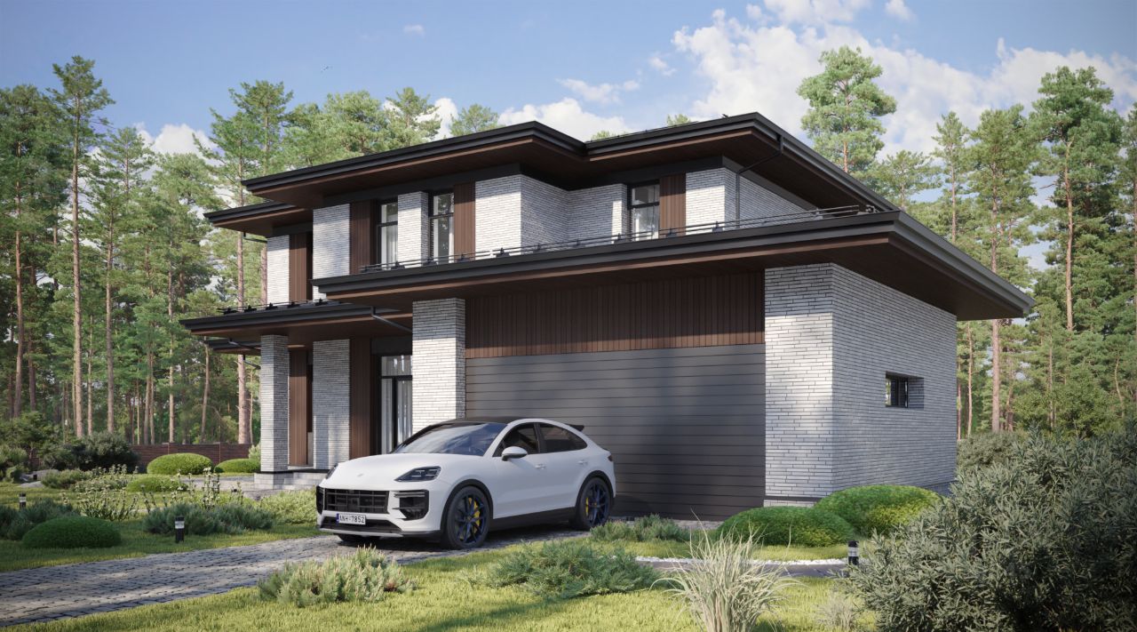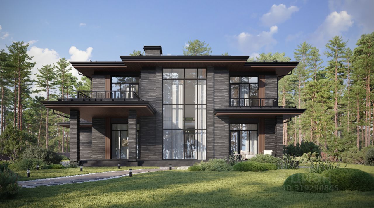 Двухэтажный дом в стиле Райт, площадью 281 м², расположенный на участке 14 соток