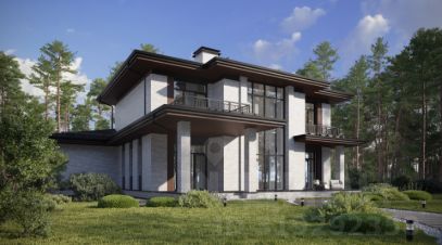 Двухэтажный дом в стиле Райт, площадью 302 м², расположенный на участке 12 соток
