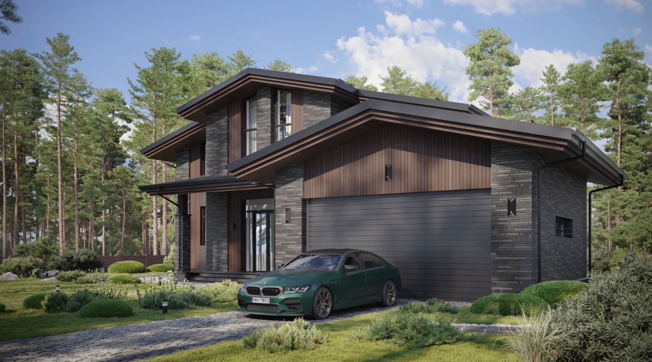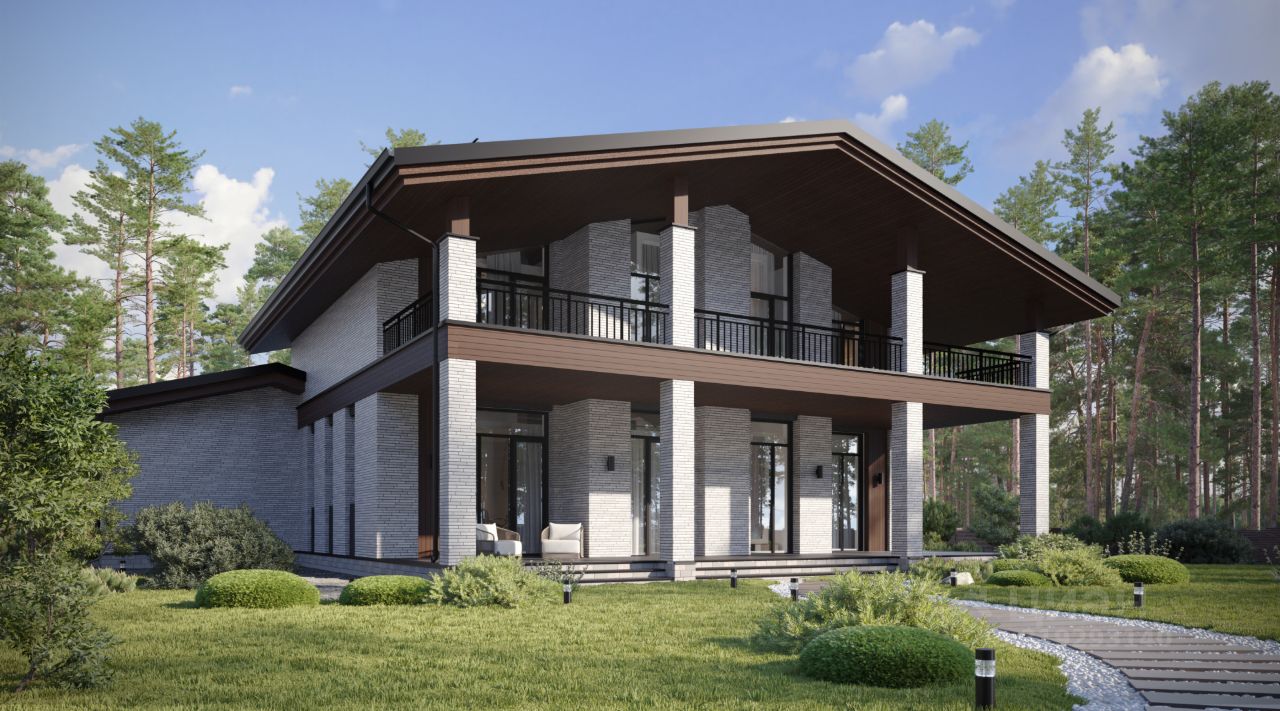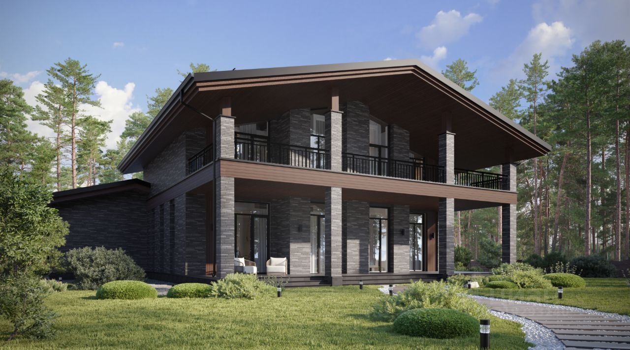 Двухэтажный дом в стиле Шале, площадью 302 м², расположенный на участке 12 соток