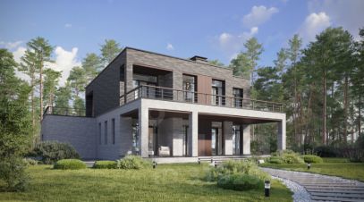 Двухэтажный дом в стиле Хайтек, площадью 261 м², расположенный на участке 14 соток