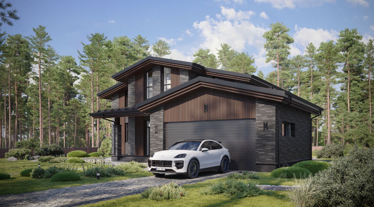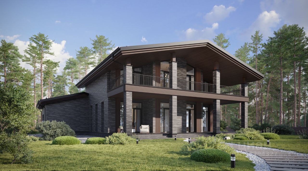 Двухэтажный дом в стиле Шале, площадью 261 м², расположенный на участке 14 соток