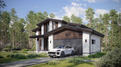 Двухэтажный дом в стиле Шале, площадью 261 м², расположенный на участке 14 соток
