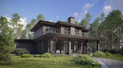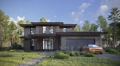 Двухэтажный дом в стиле Райт, площадью 261 м², расположенный на участке 14 соток