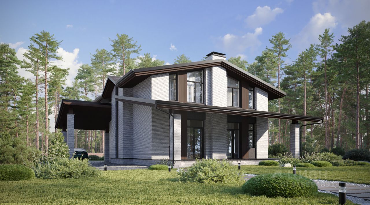 Двухэтажный дом в стиле Шале, площадью 191 м², расположенный на участке 11 соток