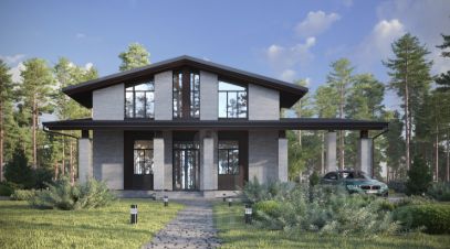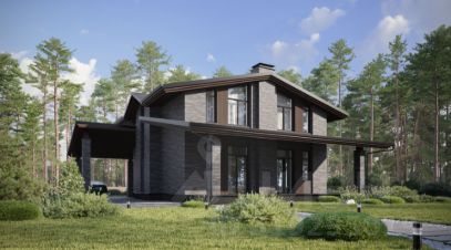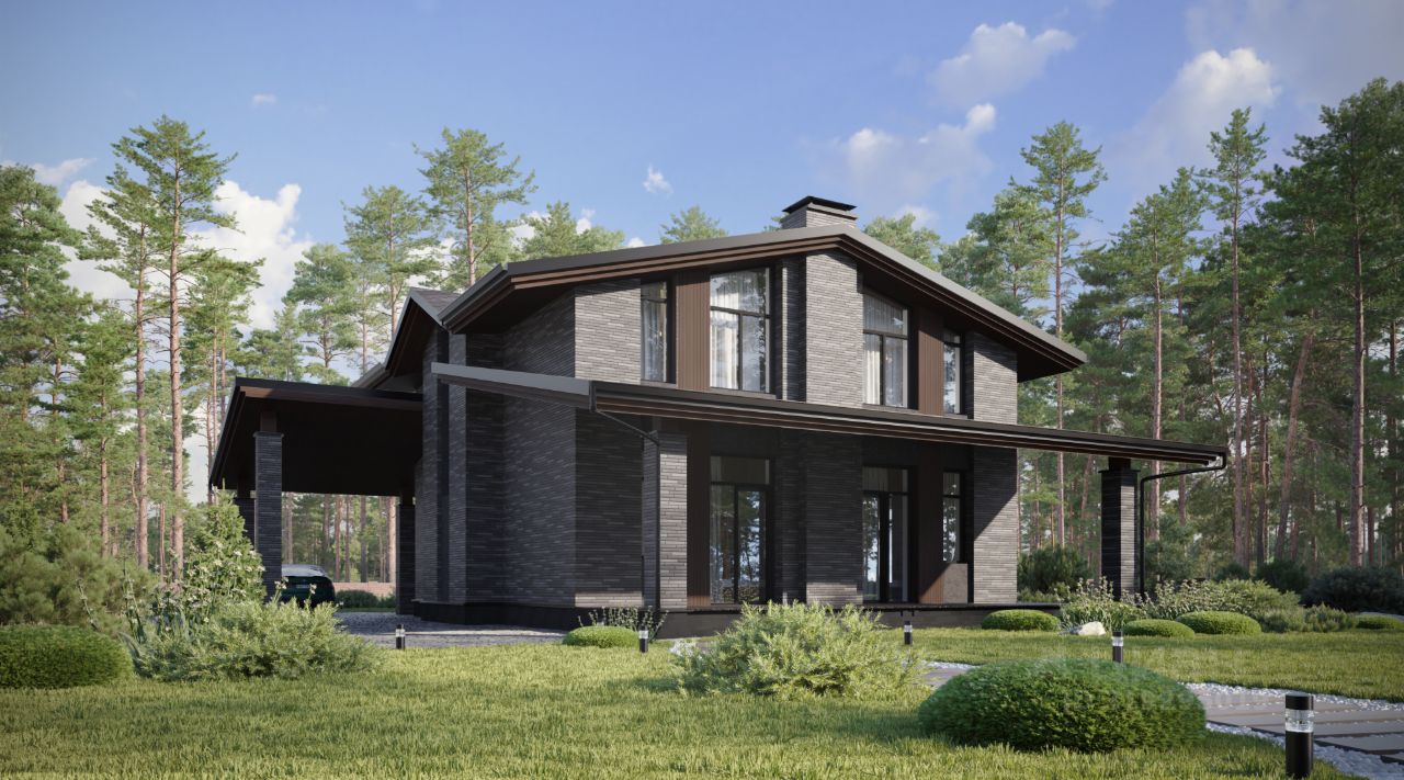 Двухэтажный дом в стиле Шале, площадью 191 м², расположенный на участке 12 соток