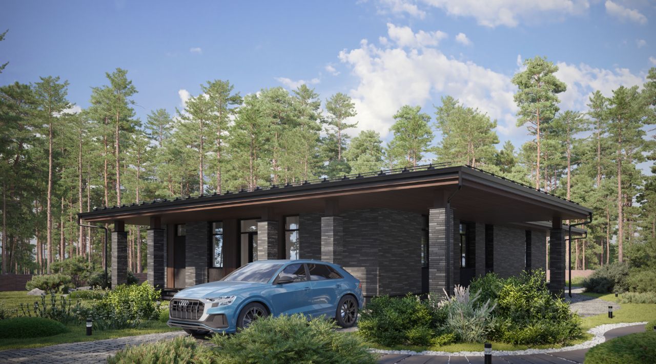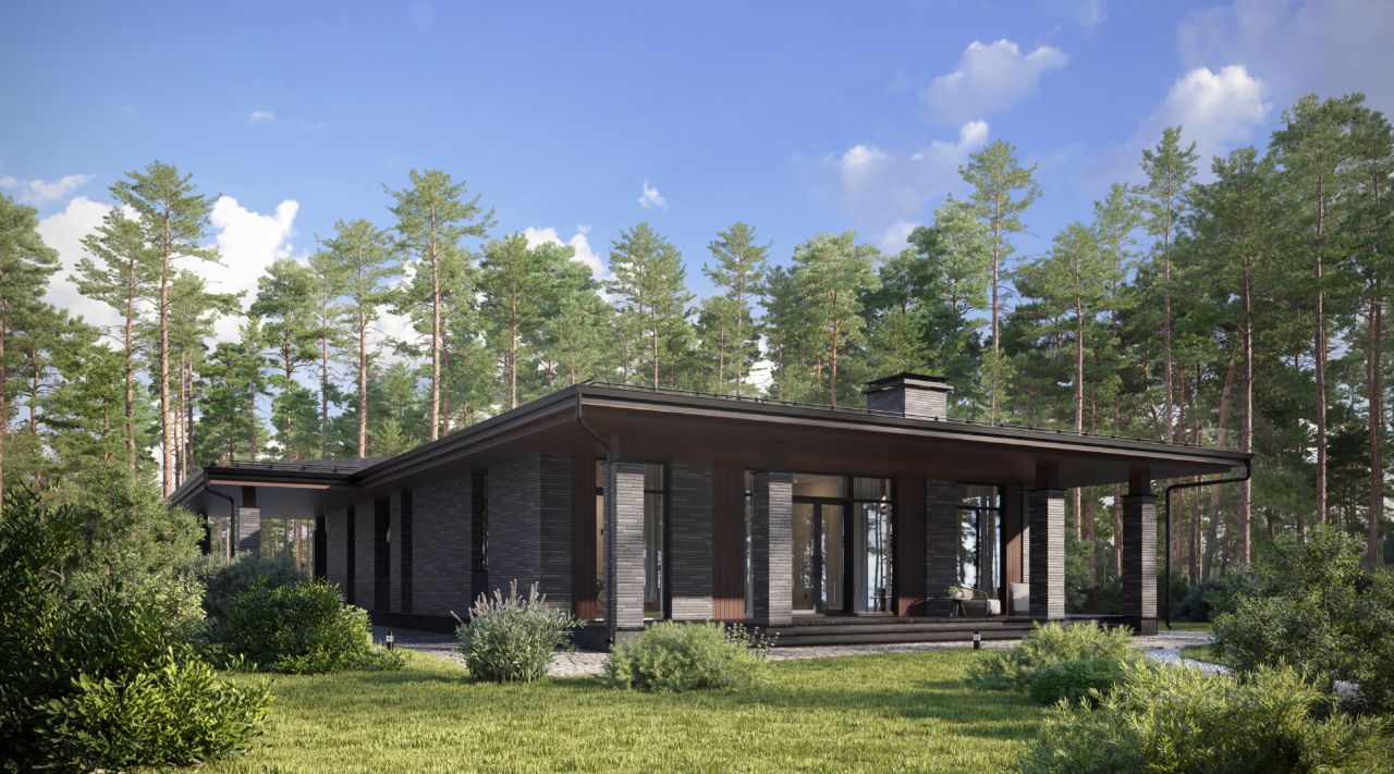 Одноэтажный дом в стиле Райт, площадью 198 м², расположенный на участке 17 соток