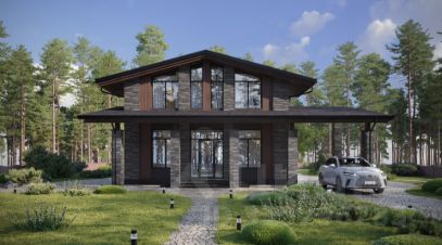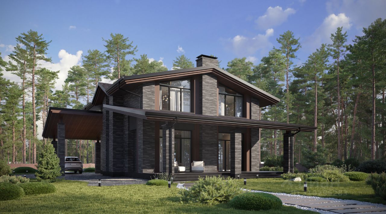 Двухэтажный дом в стиле Шале, площадью 165 м², расположенный на участке 7 соток